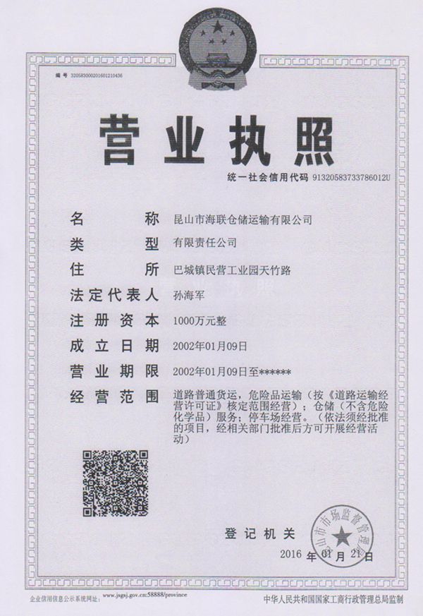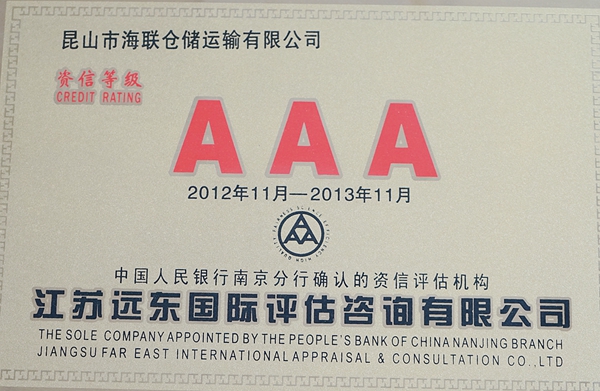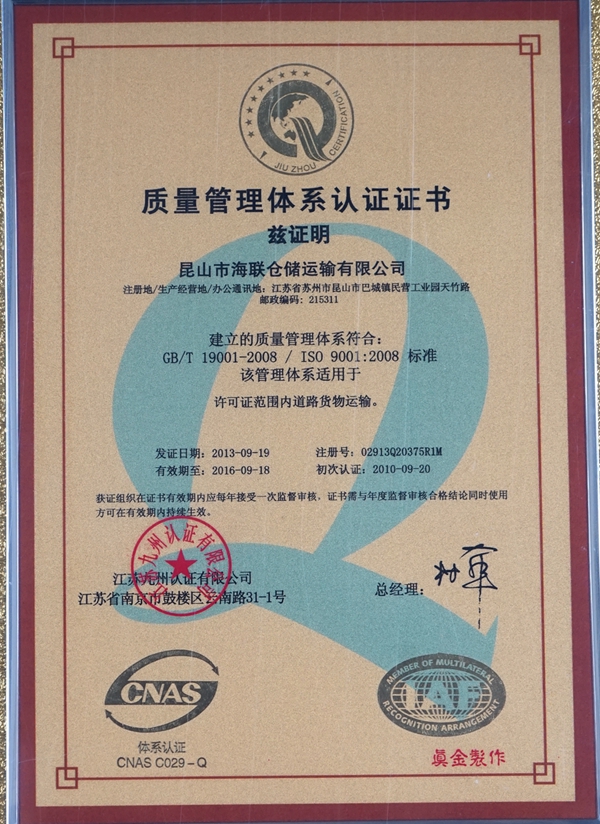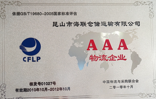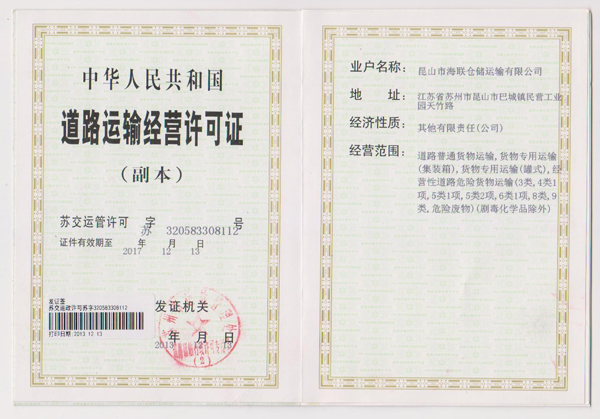 海聯公司榮譽證書昆山市貨物運輸配載協會會員證……